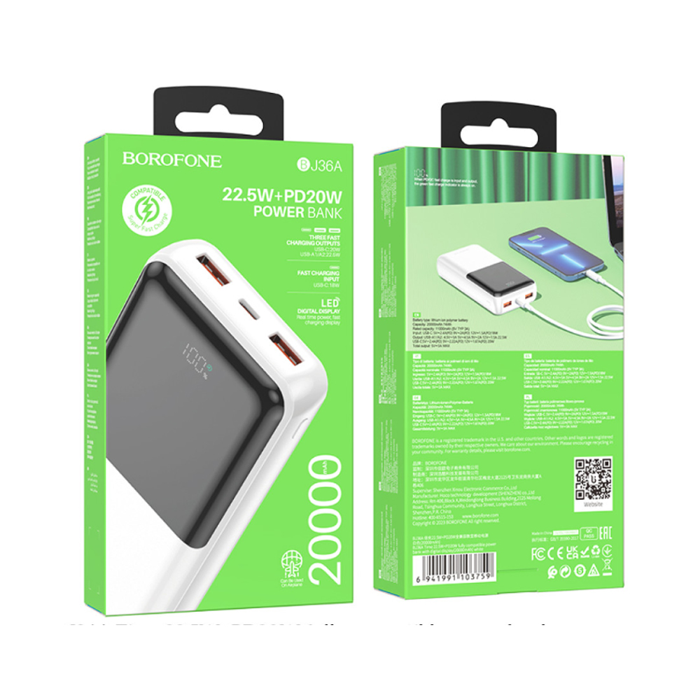 Аккумулятор внешний Borofone BJ36A, Time, 20000mAh, PD 20Вт, цвет: белый