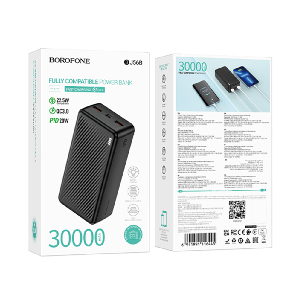 Аккумулятор внешний Borofone BJ56B, Graceful, 30000mAh, QC3.0, PD 20Вт, цвет: чёрный, мятая упаковка