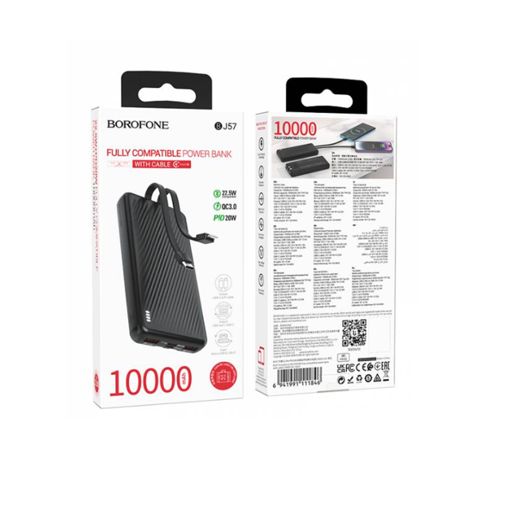 Аккумулятор внешний Borofone BJ57, Graceful, 10000 мАч, PD 20Вт, кабель 8 pin, Type-C, цвет: чёрный, мятая упаковка-1