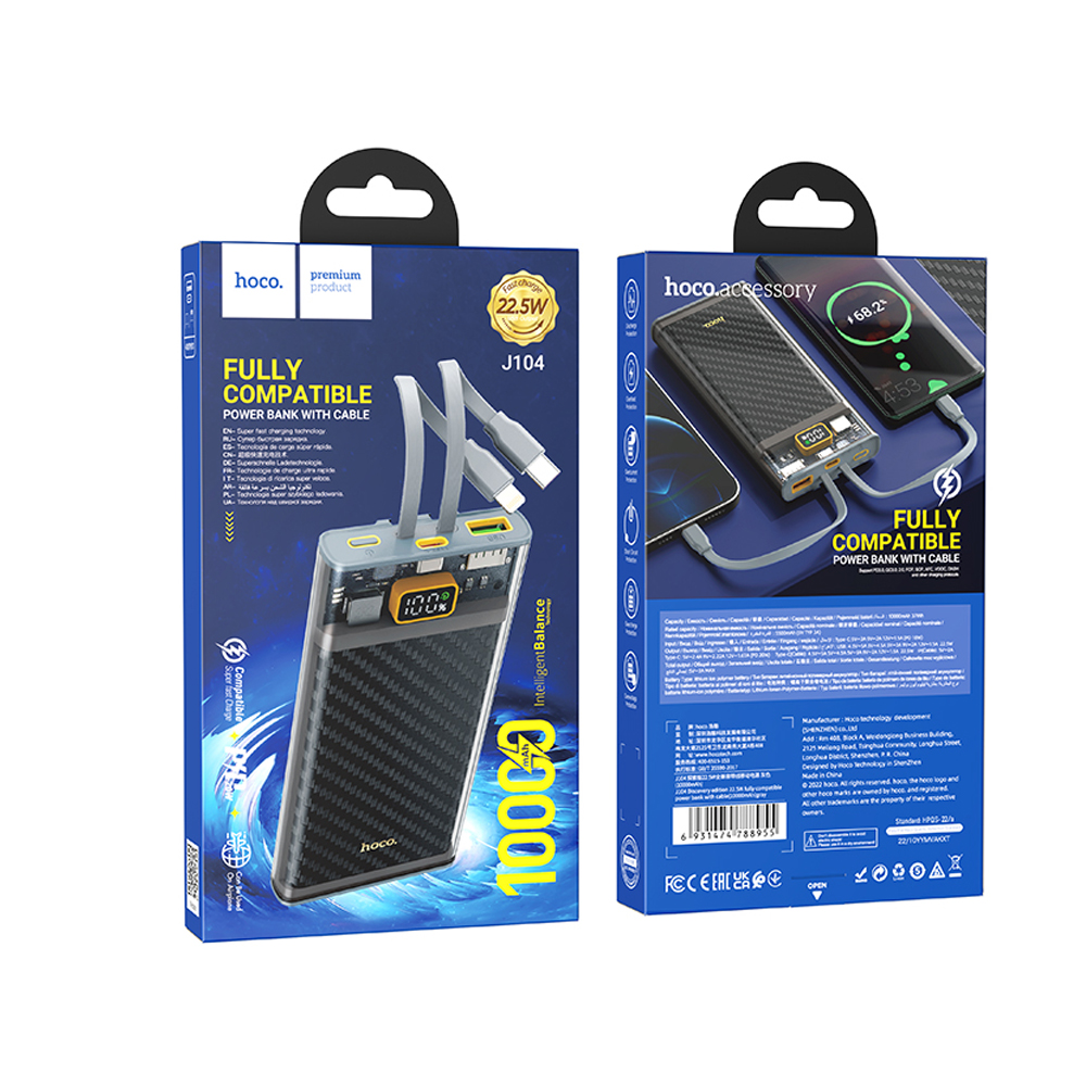Аккумулятор внешний HOCO J104, Discovery edition, 10000mAh, QC3.0, PD, цвет: серый-1