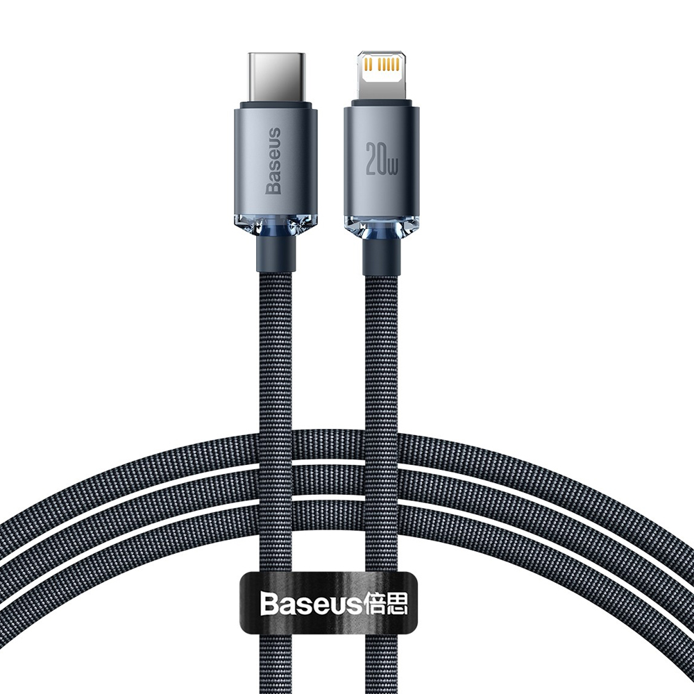 Кабель 8 pin - Type-C Baseus CAJY000201 Crystal Shine, 1.2м, 2.4A, 20Вт, цвет: чёрный-1