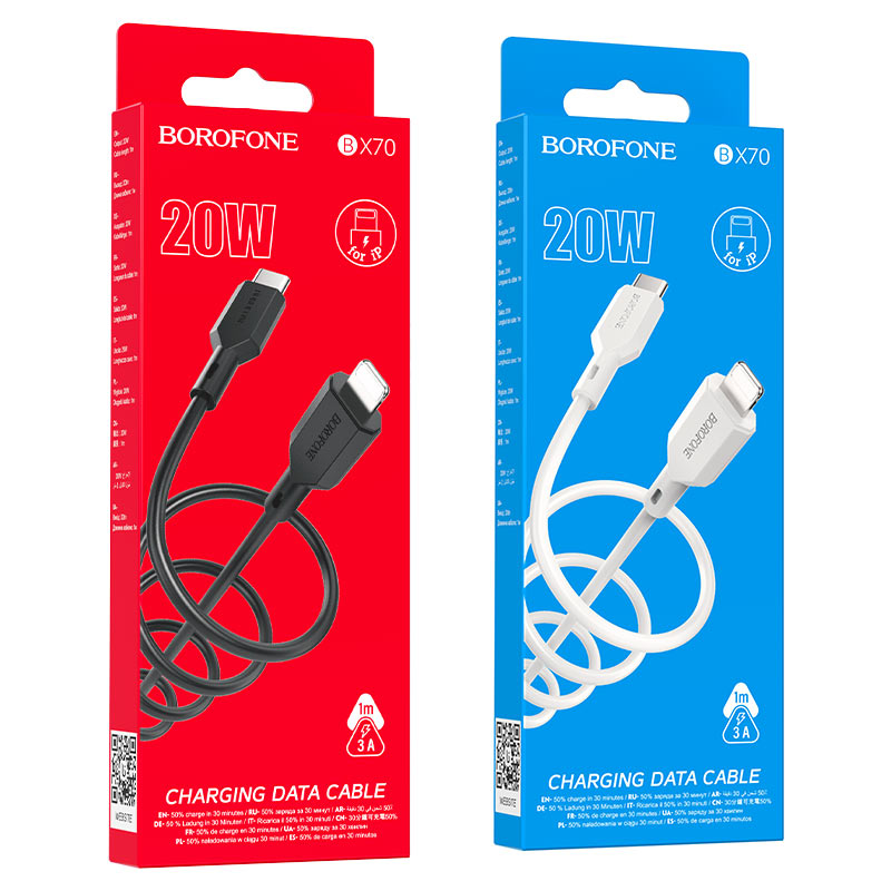 Кабель 8 pin - Type-C Borofone BX70 Shengda, 1.0м, 3.0A, цвет: чёрный, мятая упаковка-1