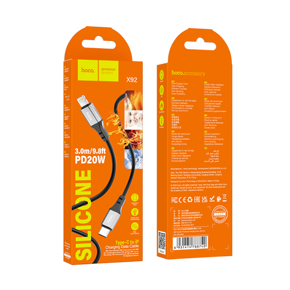 Кабель 8 pin - Type-C HOCO X92 Honest, 3.0м, PD 20Вт, цвет: чёрный-1
