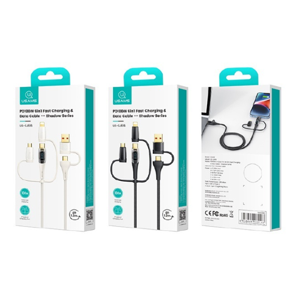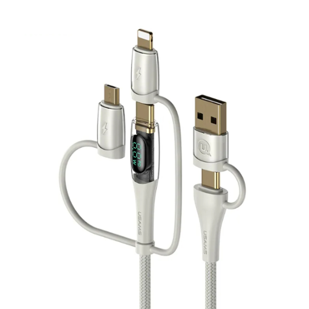 Кабель USB, Type-C - Type-C, 8 pin, микро USB Usams US-SJ616 Shadow, 1.2м, 2.4A, PD 100Вт, цвет: белый
