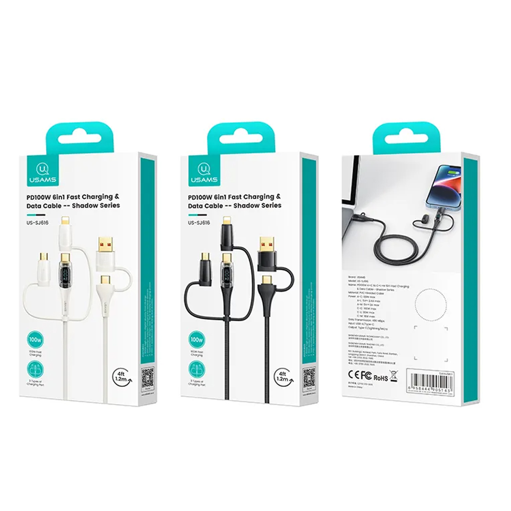 Кабель USB, Type-C - Type-C, 8 pin, микро USB Usams US-SJ626 Shadow, 2.0м, 2.4A, PD 100Вт, цвет: белый