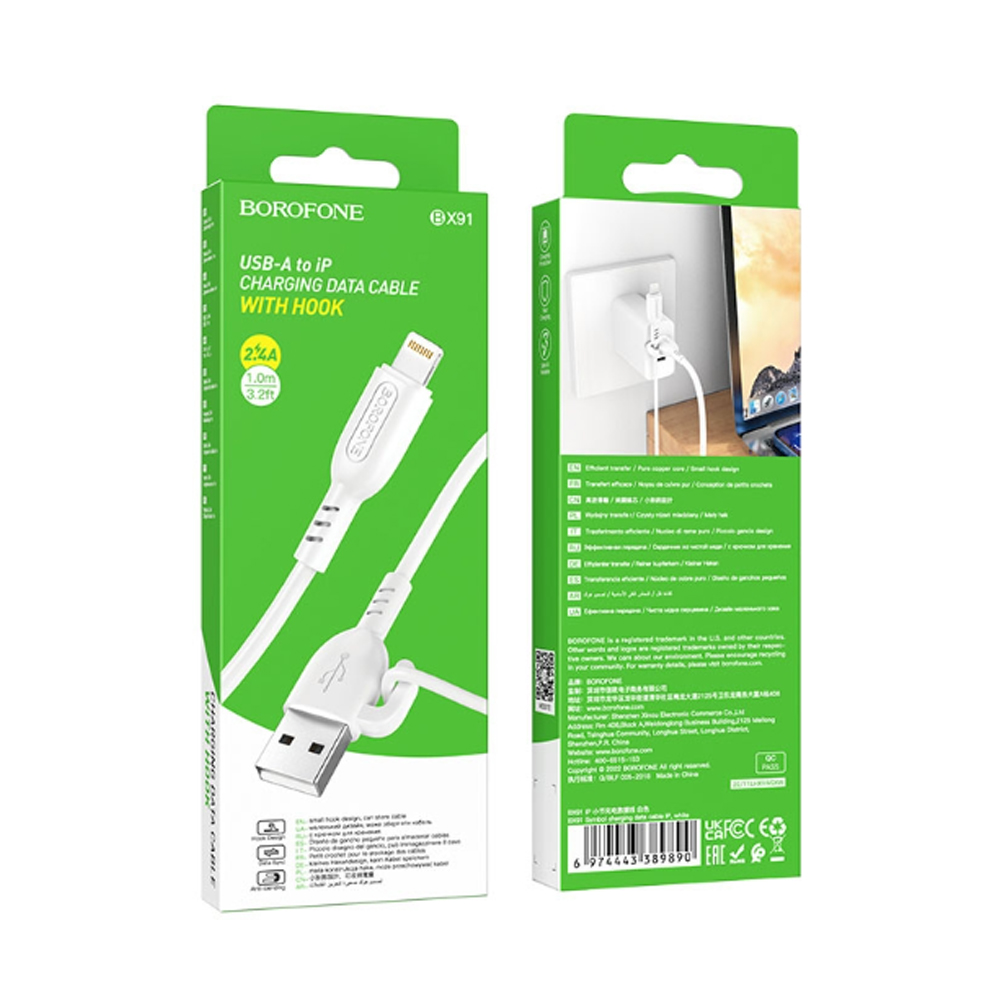 Кабель USB - 8 pin Borofone BX91, 1.0м, 2.4A, цвет: белый-1