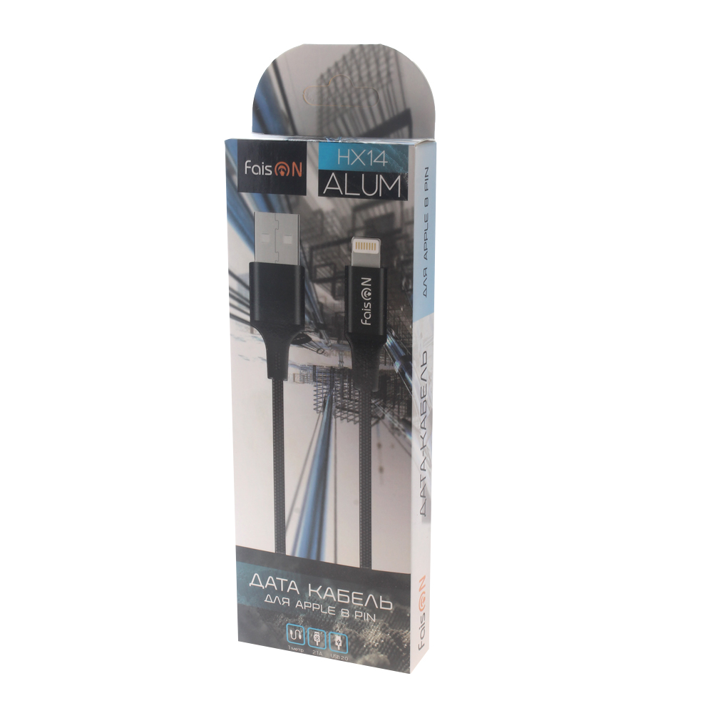Кабель USB - 8 pin FaisON HX14 ALUM, 1.0м, 2.1A, цвет: чёрный-1