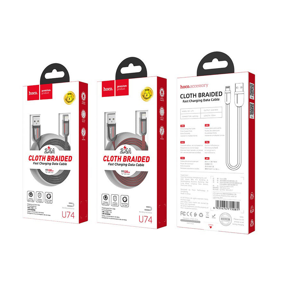 Кабель USB - 8 pin HOCO U74 Grand, 1.2м, 2.4A, цвет: красный