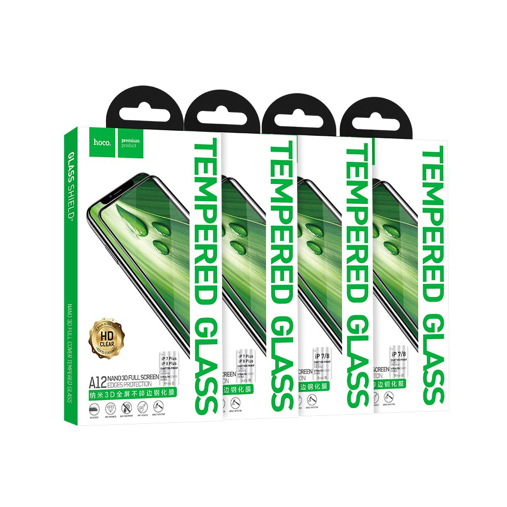Стекло защитное HOCO для APPLE iPhone 7/8 Plus, A12, Nano 3D Full sreen , 0.3 мм, 3D, глянцевое, цвет: белый
