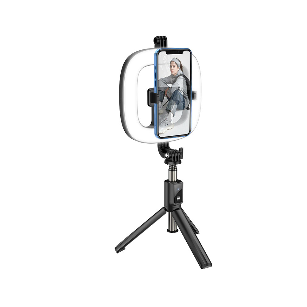 Монопод для селфи HOCO, LV03 Plus, Showfull, bluetooth 4,2, трипод, вспышка, цвет: чёрный-1