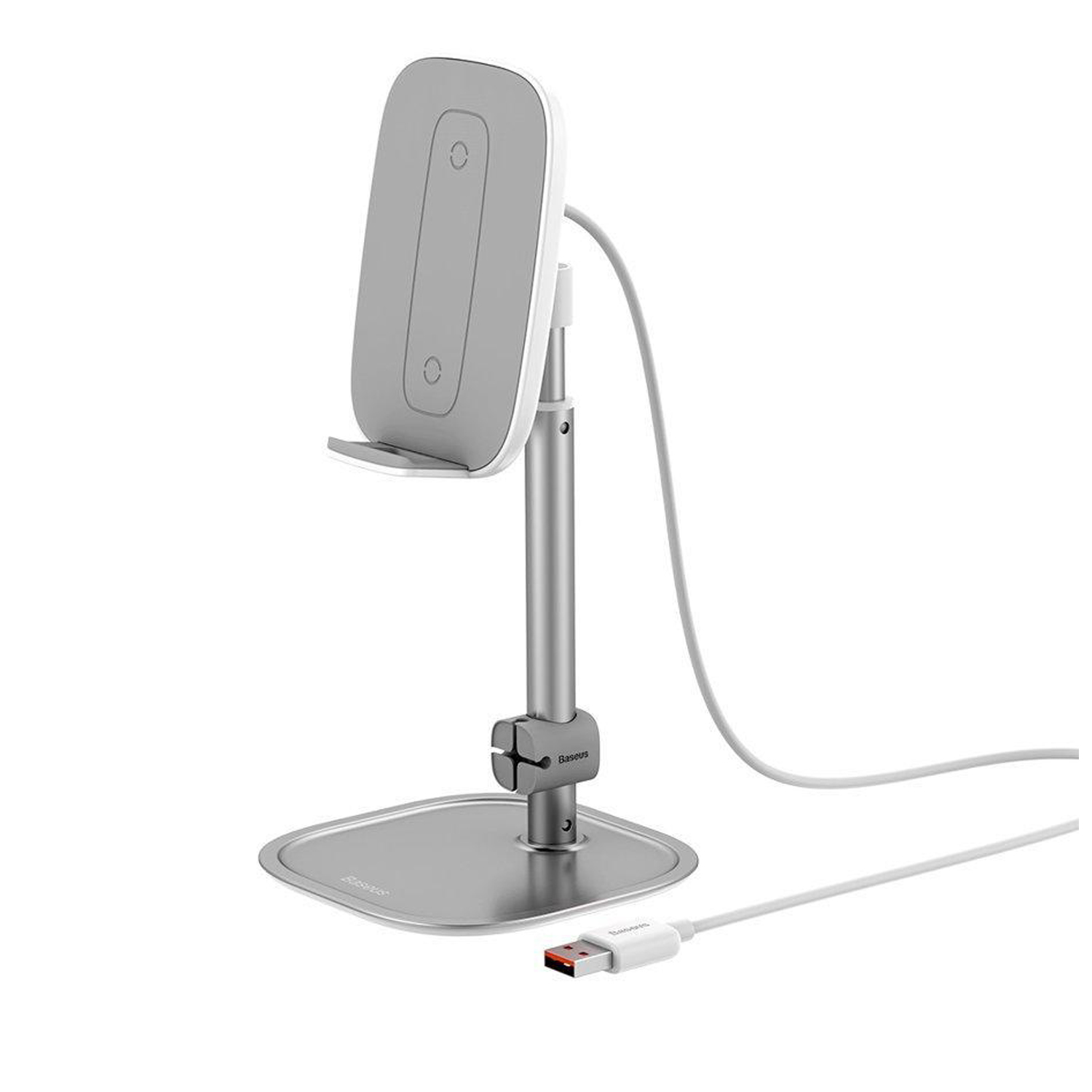 Держатель настольный Baseus, SUWY-D0S, Literary, для смартфона, пластик, беспроводная зарядка, телескопический, цвет: серебряный-1
