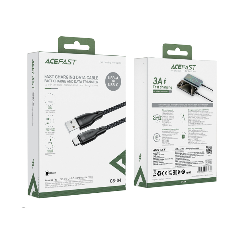 Кабель USB - Type-C ACEFAST C8-04, 1.2м, 3.0A, цвет: чёрный, плетение-1