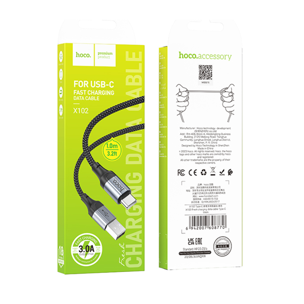 Кабель USB - Type-C HOCO X102 Fresh, 1.0м, 3,0А, цвет: чёрный-1