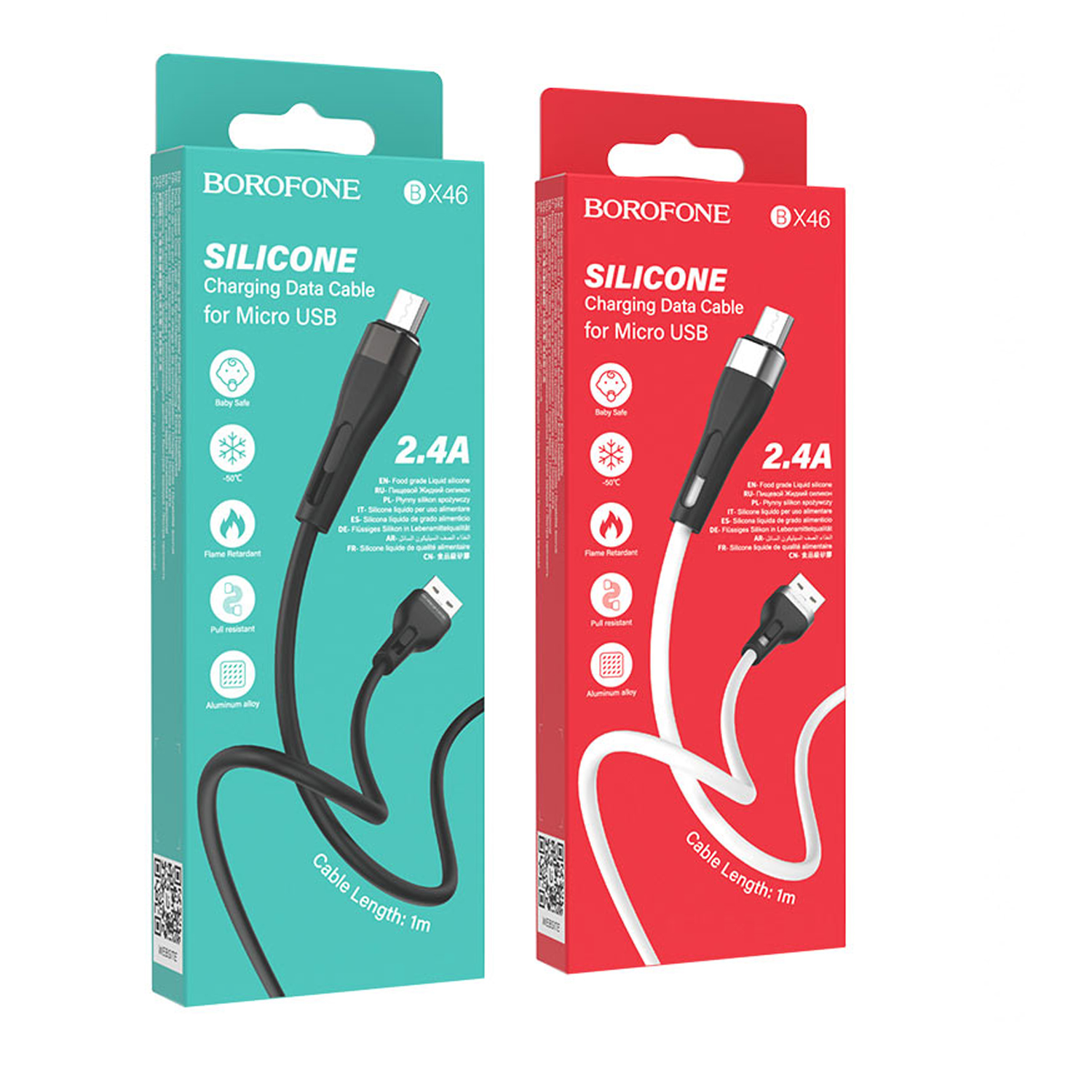 Кабель USB - микро USB Borofone BX46 Rush, 1.0м, круглый, 2.4A, силикон, цвет: чёрный-1