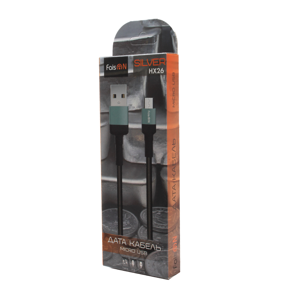 Кабель USB - микро USB FaisON HX26 Express, 1.0м, 2.4A, цвет: чёрный, серая вставка-1