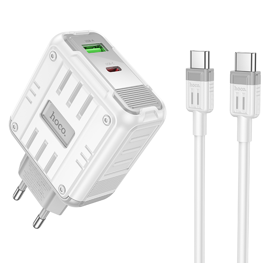 Блок питания сетевой 1 USB, 1 Type-C HOCO C138A, Rock, 65Вт, PD, QC, FCP, AFC, кабель Type-C-Type-C, 1,0 м, цвет: белый-1