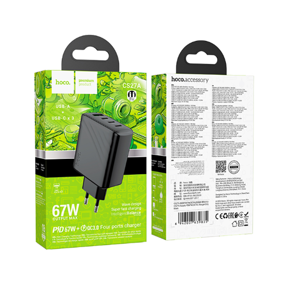 Блок питания сетевой 1 USB, 3 Type-C HOCO CS27A, Supply, 5V, 3.0A, PD 67Вт, цвет: чёрный-1