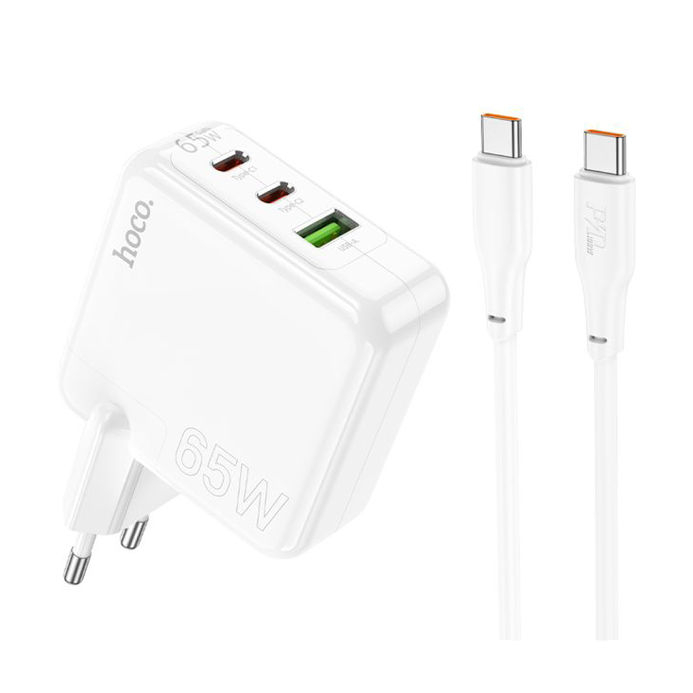 Блок питания сетевой 2 Type-C, USB HOCO C115A, Header, 65Вт, QC, FCP, AFC, кабель Type-C-Type-C, цвет: белый-1