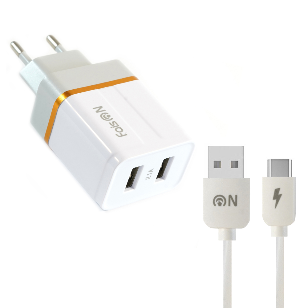 Блок питания сетевой 2 USB FaisON C-30, Shine, 2100mA, кабель Type-C, цвет: белый-1