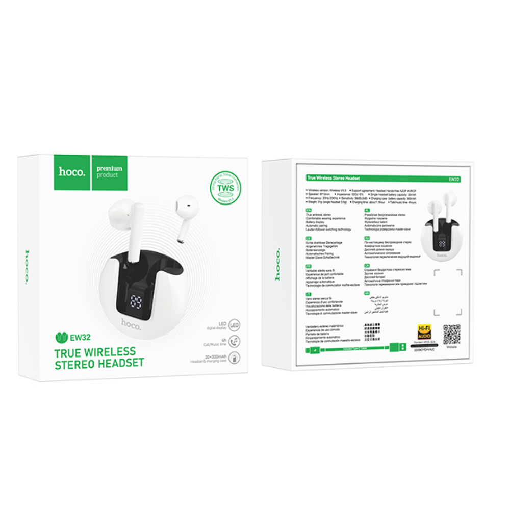 Наушники внутриканальные HOCO EW32, Gentle true, Bluetooth, TWS, цвет: белый, мятая упаковка