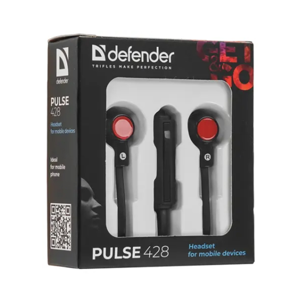 Наушники внутриканальные Defender 428, Pulse, кабель 1.2м, цвет: чёрный, мятая упаковка