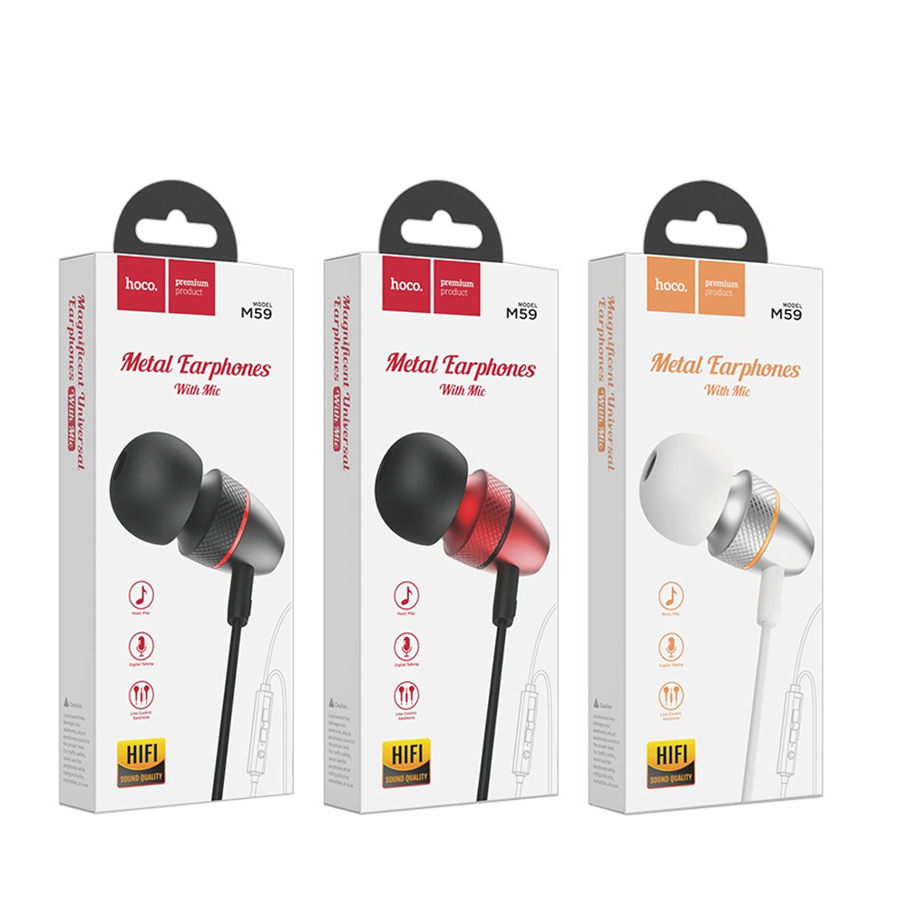 Наушники внутриканальные HOCO M59, Magnificent, Jack 3.5мм, 1.2 м, цвет: чёрный
