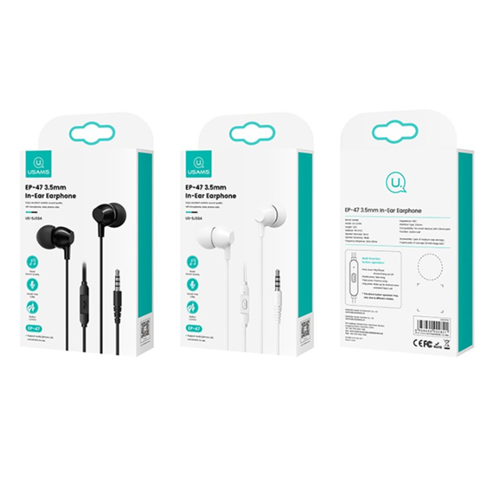 Наушники внутриканальные Usams EP-47, Jack 3.5мм, 1.2 м, цвет: чёрный