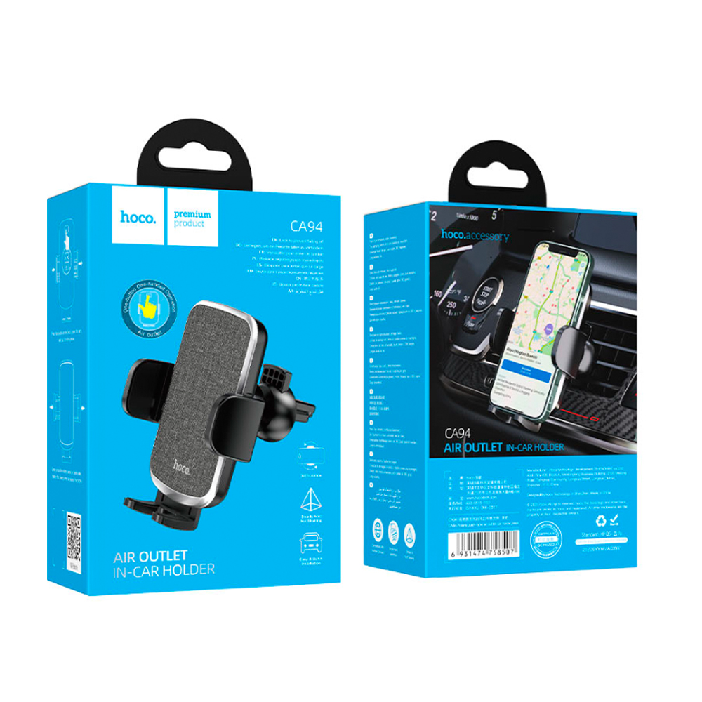 Держатель автомобильный HOCO, CA94, Polaris, двойной зажим, на воздуховод, для смартфона, цвет: чёрный, серебряная вставка-1