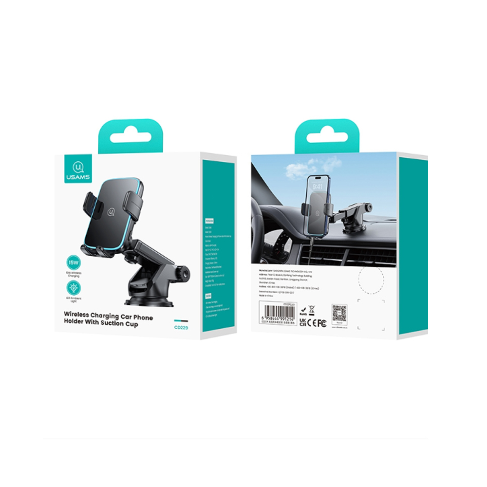 Держатель автомобильный Usams, US-CD229, 15W, 4,5"-6,7", цвет: чёрный