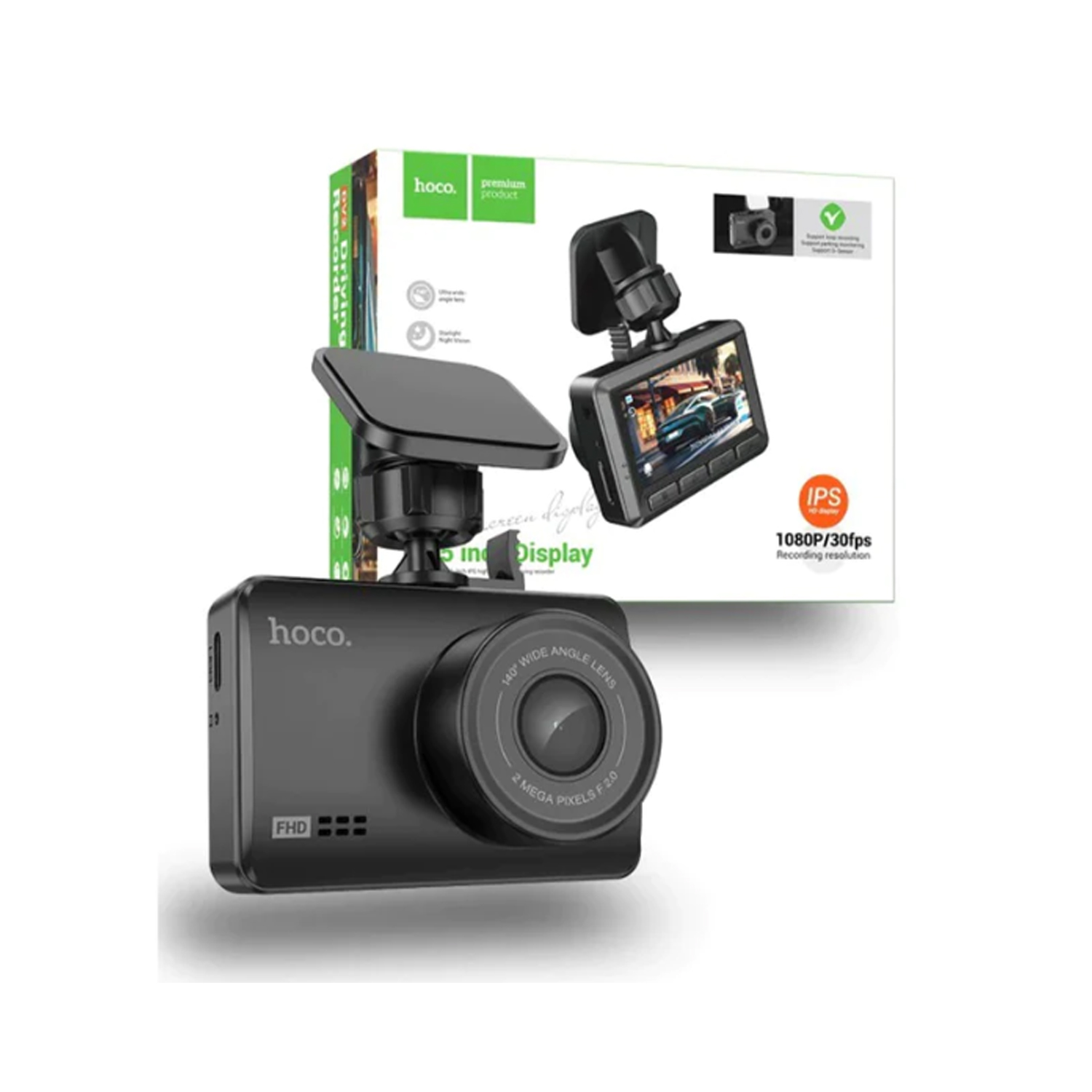 Видеорегистратор HOCO, DV2, пластик, сенсорное управление, разрешение 240 *432, кабель 3.5м, цвет: чёрный-1