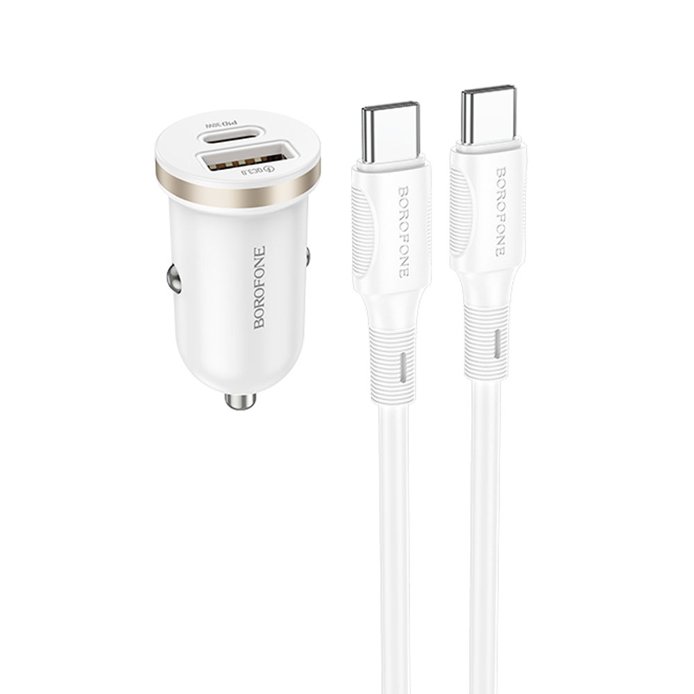 Блок питания автомобильный 1 USB, 1 Type-C Borofone BZ22, Scenery, 18Вт, кабель Type-C-Type-C, цвет: белый, мятая упаковка