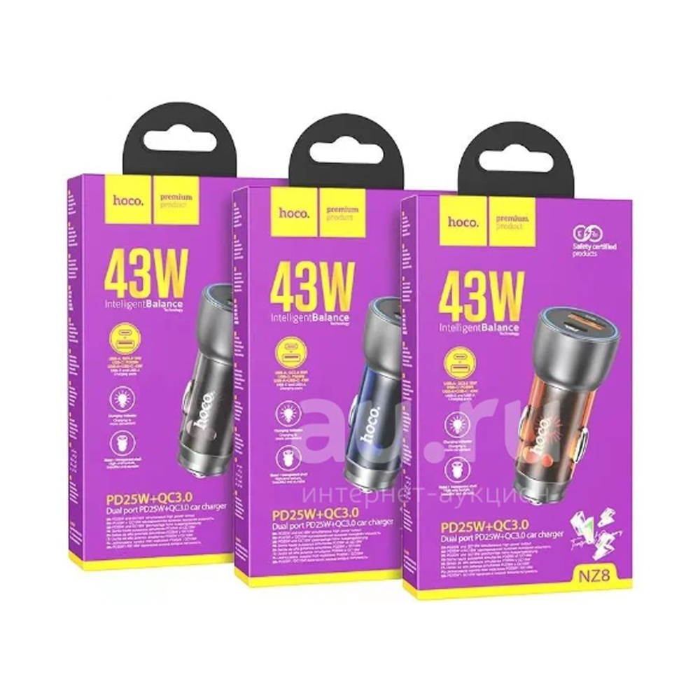 Блок питания автомобильный 1 USB, 1 Type-C HOCO NZ8, Sprinter, 43Вт, QC3.0, PD, цвет: коричневый-1