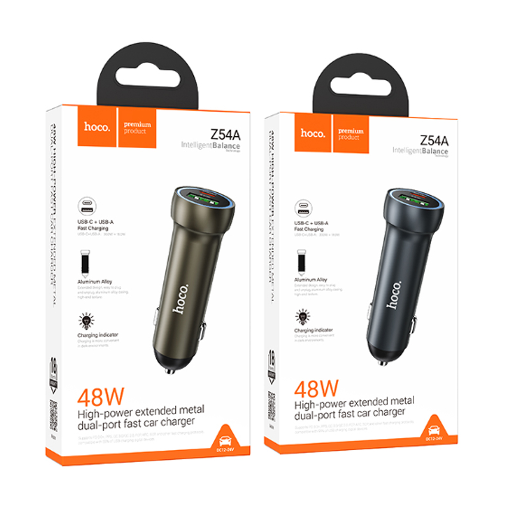 Блок питания автомобильный 1 USB, 1 Type-C HOCO Z54А, Prosperous, 48Вт, PD30W/QC3.0, цвет: серый-1