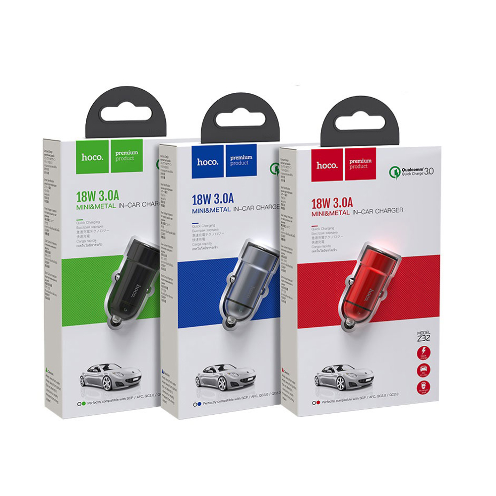 Блок питания автомобильный 1 USB HOCO Z32, Speed Up, 3000mA, QC3.0, цвет: серый-1