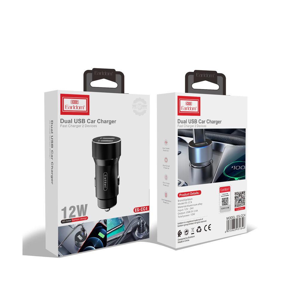Блок питания автомобильный 2 USB Earldom ES-CC4I, 2400mA, 12Вт, кабель 8 pin, цвет: чёрный