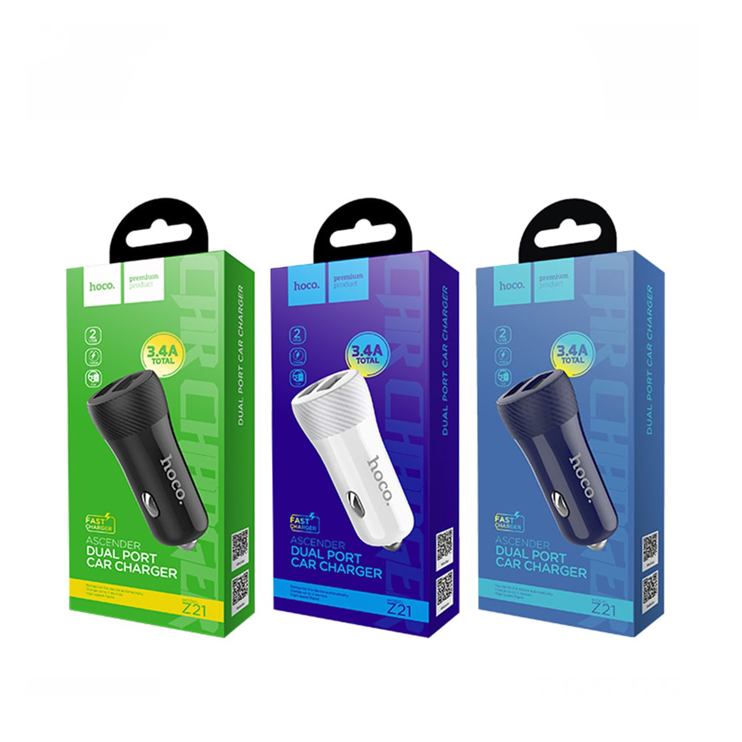 Блок питания автомобильный 2 USB HOCO, Z21, Ascender, 3400mA, пластик, цвет: чёрный-1