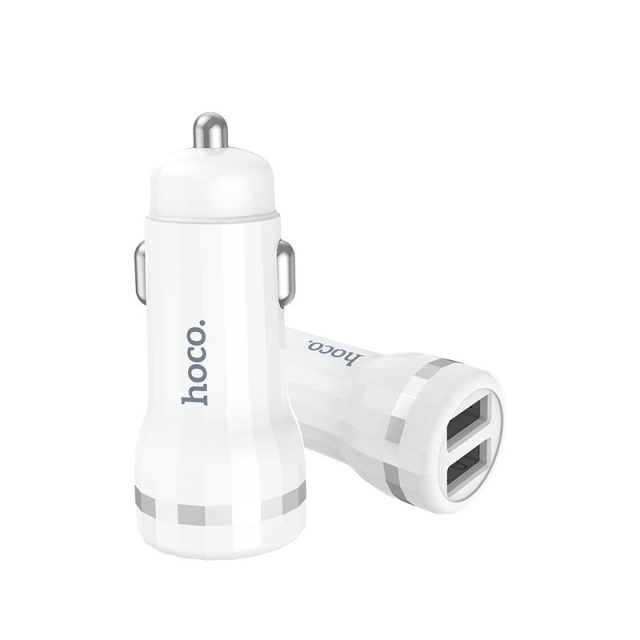 Блок питания автомобильный 2 USB HOCO Z27, Staunch, 2400mA, кабель микро USB, цвет: белый-1