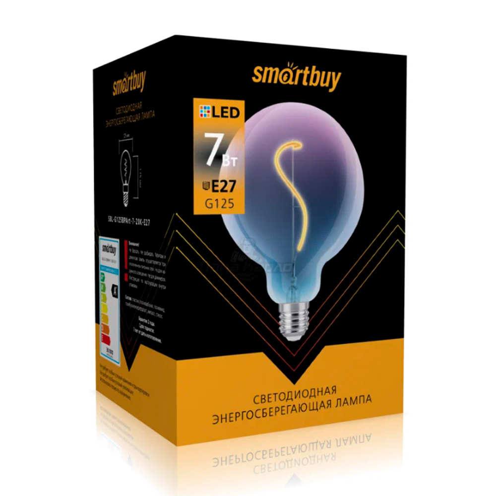 Лампа светодиодная SmartBuy G125, E27, шар, 7Вт/220-240V/3000К, тёплый свет-1