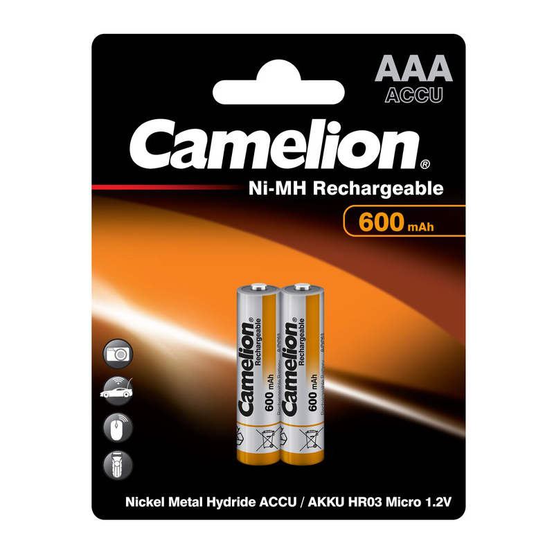 Аккумулятор AAA Camelion, R03-2BL, 600mAh, (2/24/480)