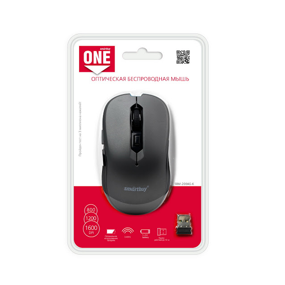 Мышь беспроводная SmartBuy, 200AG-G, оптическая, цвет: серый-1