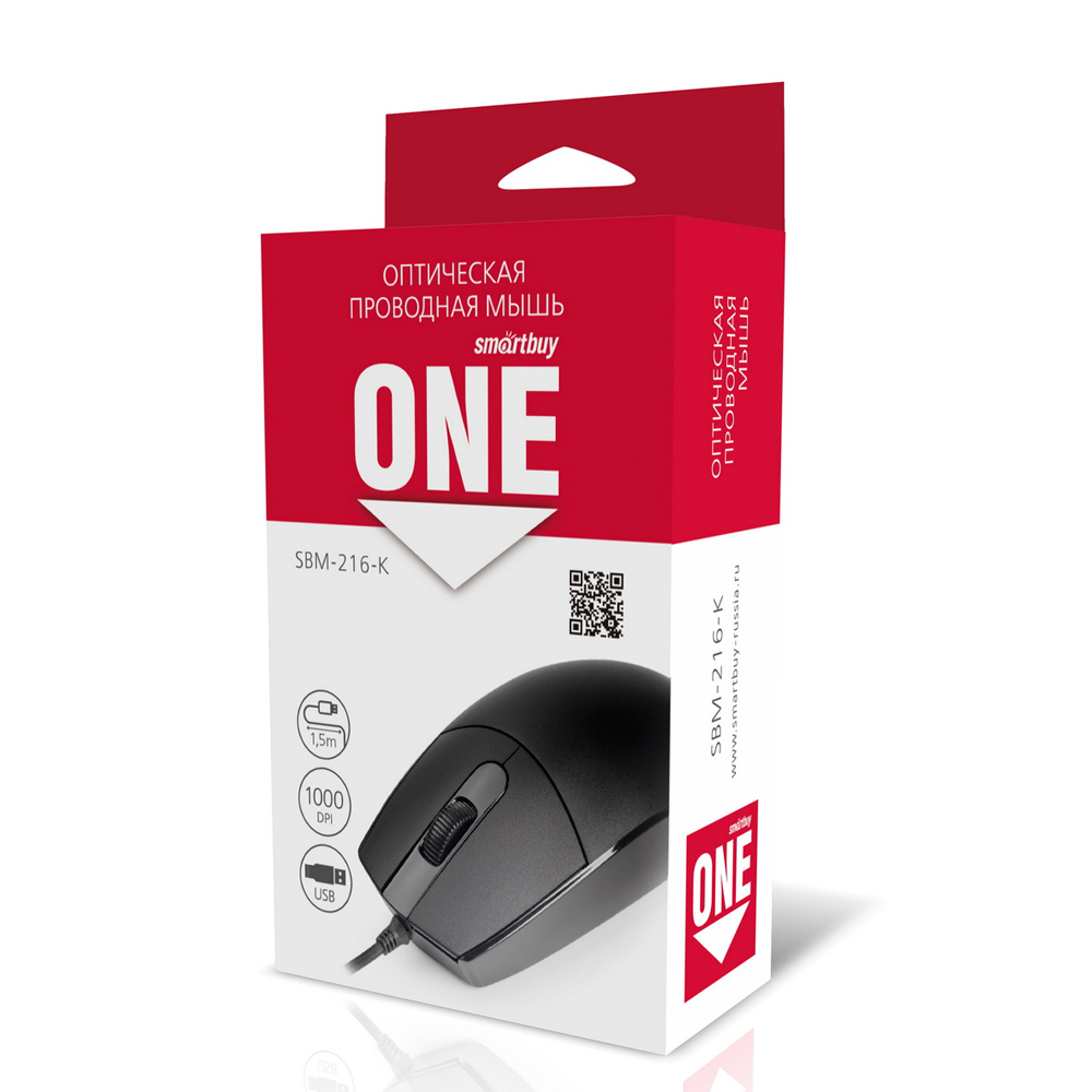 Мышь проводная SmartBuy, 216-K, ONE, оптическая, кабель 1,5м, цвет: чёрный, серый-1