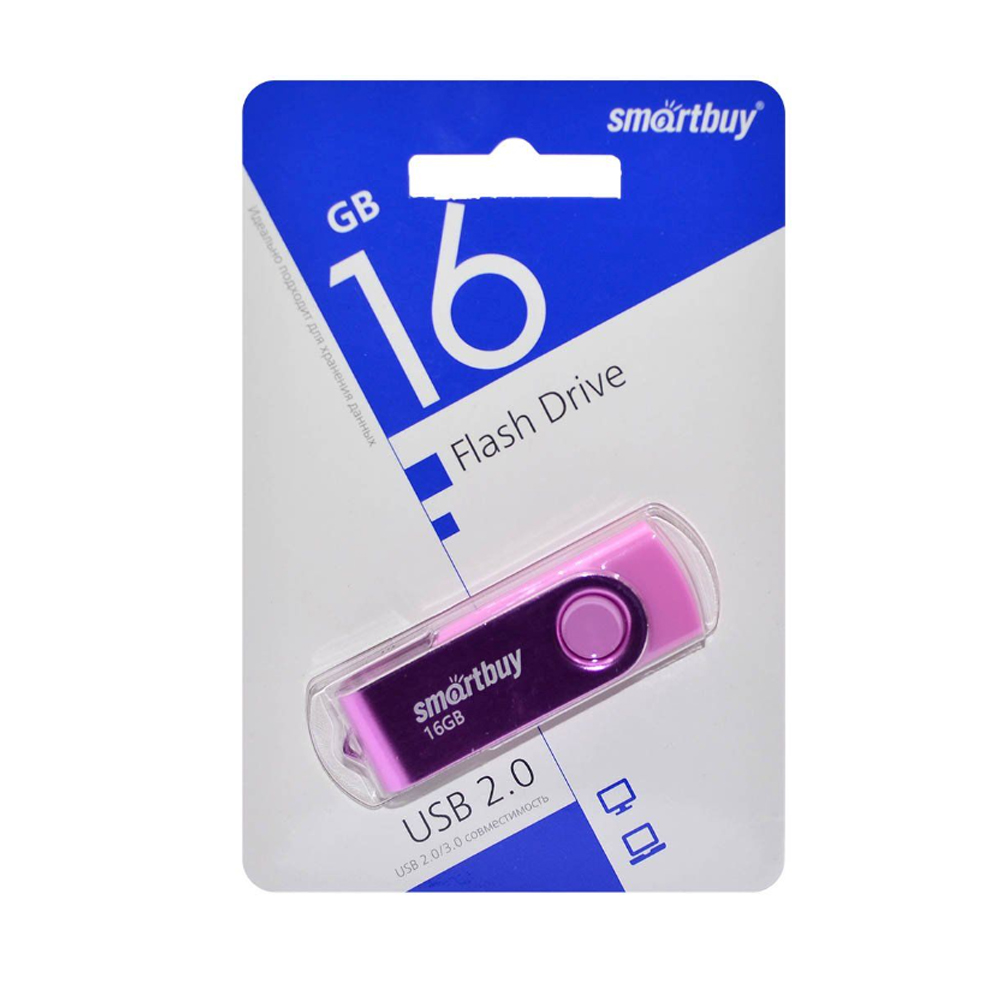 Флеш-накопитель 16Gb SmartBuy Twist, USB 2.0, пластик, розовый
