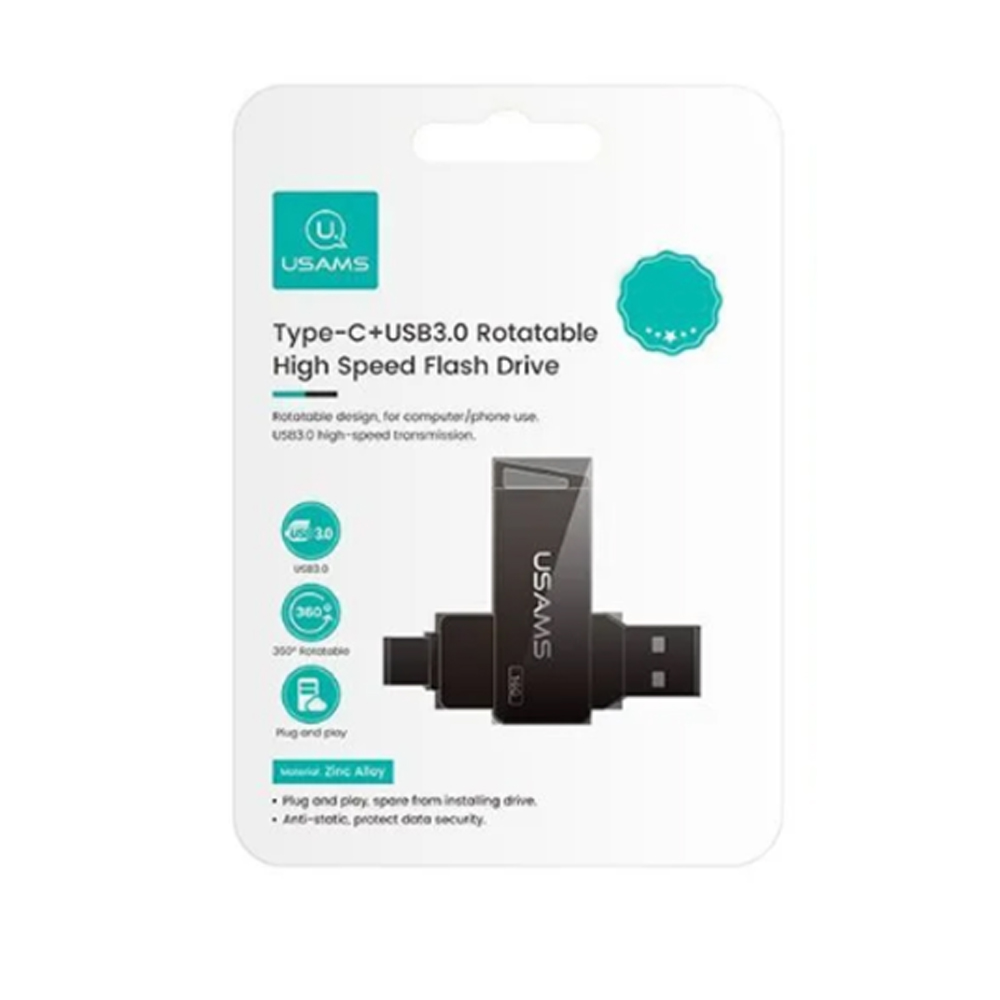 Флеш-накопитель 64Gb Usams US-ZB200, USB 3.0, Type-C, пластик, металл, поворот на 360°, чёрный-1