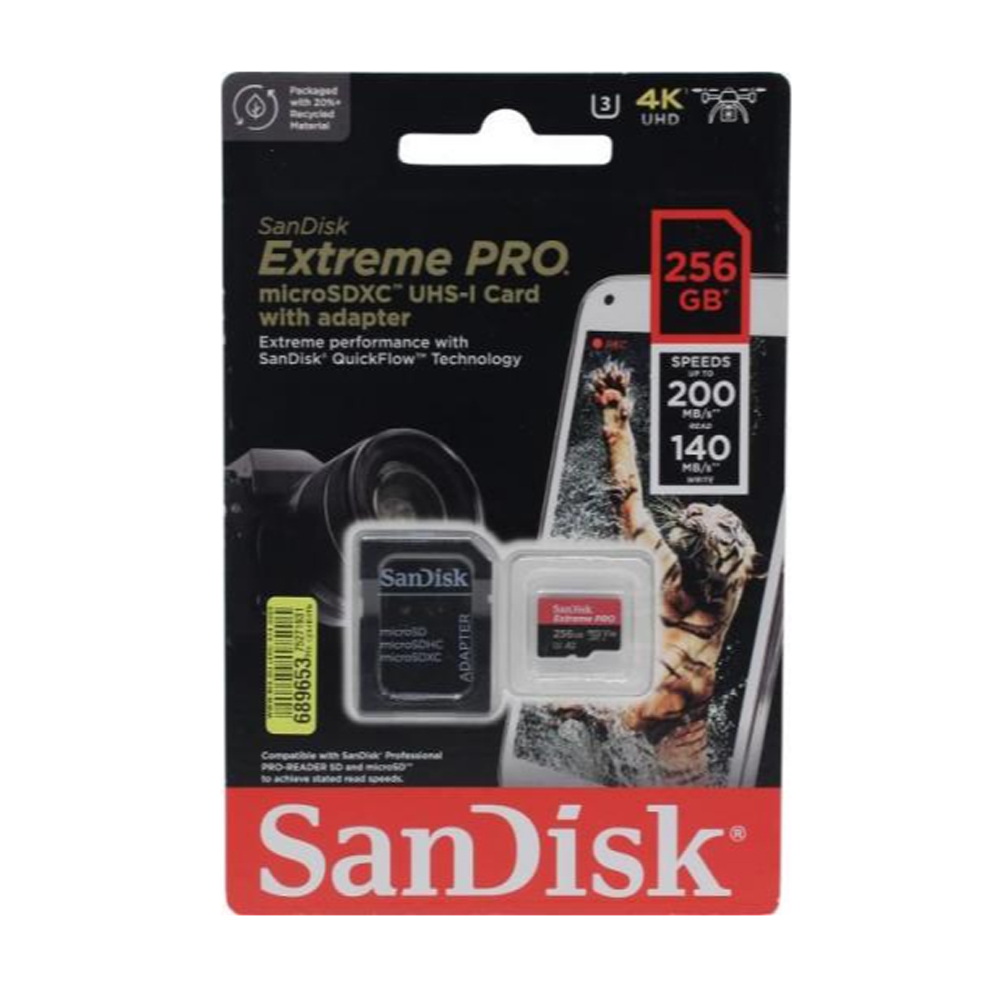 Карта памяти microSDXC 256Gb SanDisk, Extreme Pro, UHS-I R/W 200/140Mb/s, с адаптером-1