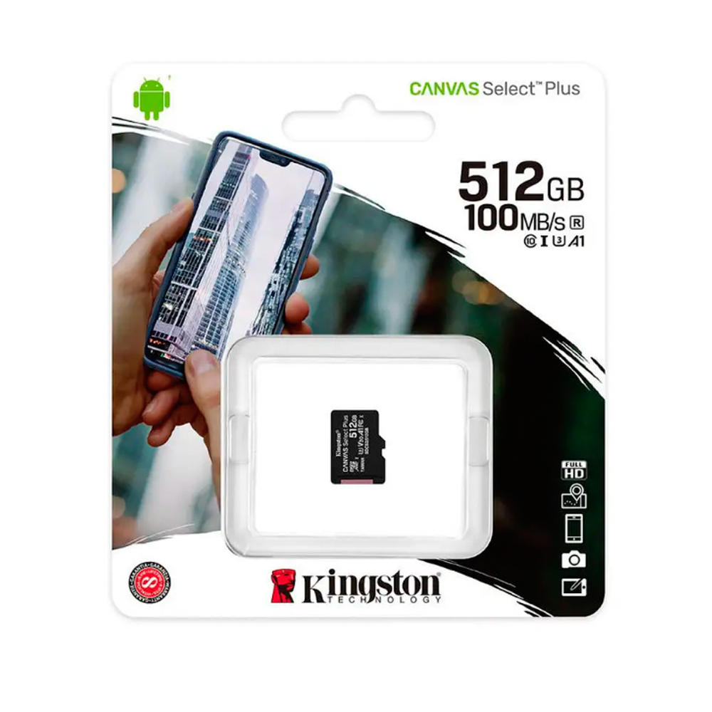 Карта памяти microSDXC 512Gb Kingston, Canvas Select Plus, Class U3 UHS-I A1 V30, 100/85MB/s, без адаптера-1