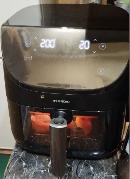 Выглядит стильно, под любую кухню. Греется быстро, температура держит ровно. Сделал в нём картошку с курицей и сосиски в тесте: за 25 минут всё пропеклось, корочка румяная, а внутри сочно. Очень доволен. Отличная вещь для тех, кто хочет готовить с минимумом масла. Рекомендую.